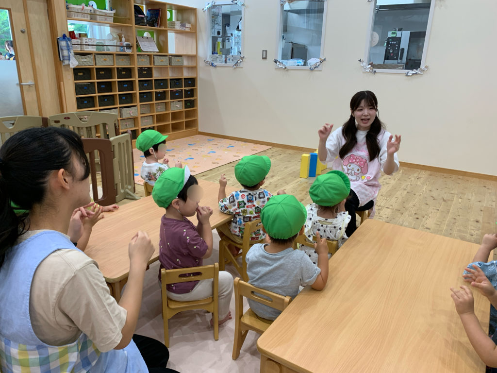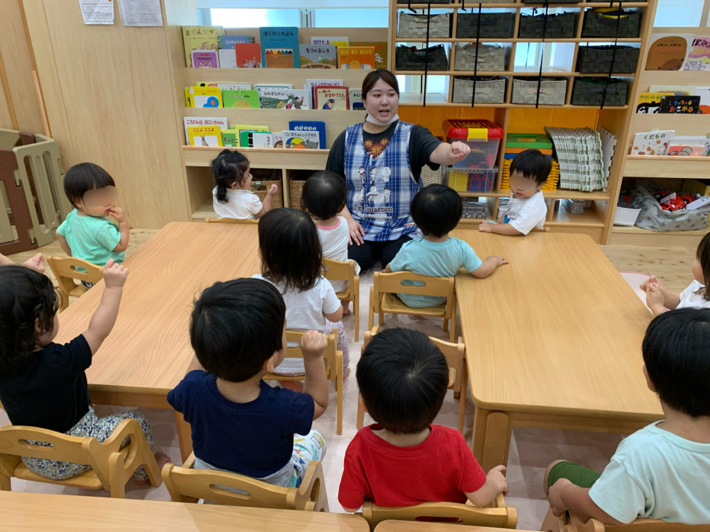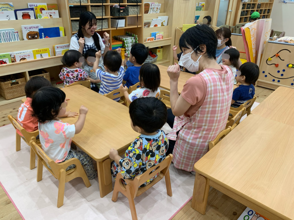 朝の会では手遊びや絵本、紙芝居の読み聞かせ、