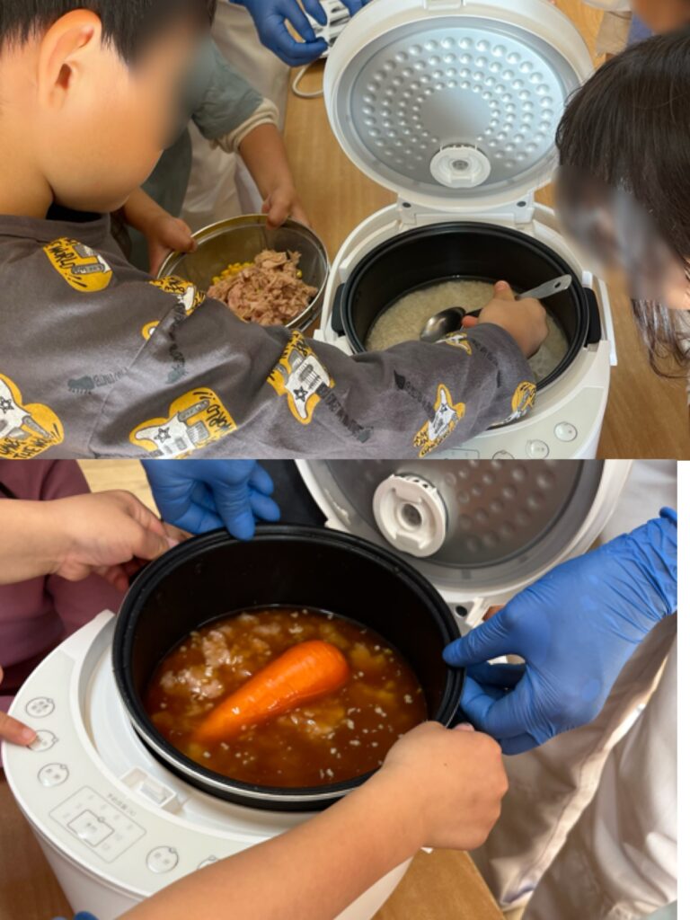 今回作ったのは、炊き込みご飯です。何を作るかは話し合いで決め、必要な材料も皆でお買い物に行ってきました。