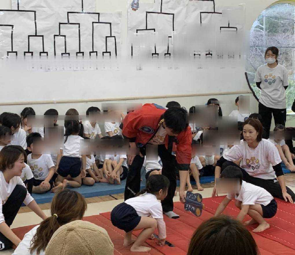 幼児クラスは自分で『◯◯のはな』『◯◯のりゅう』などと四股名を考えてクラス別にトーナメント式で取組みをし、今年も強い『うちゅう横綱』が3名誕生しました!
