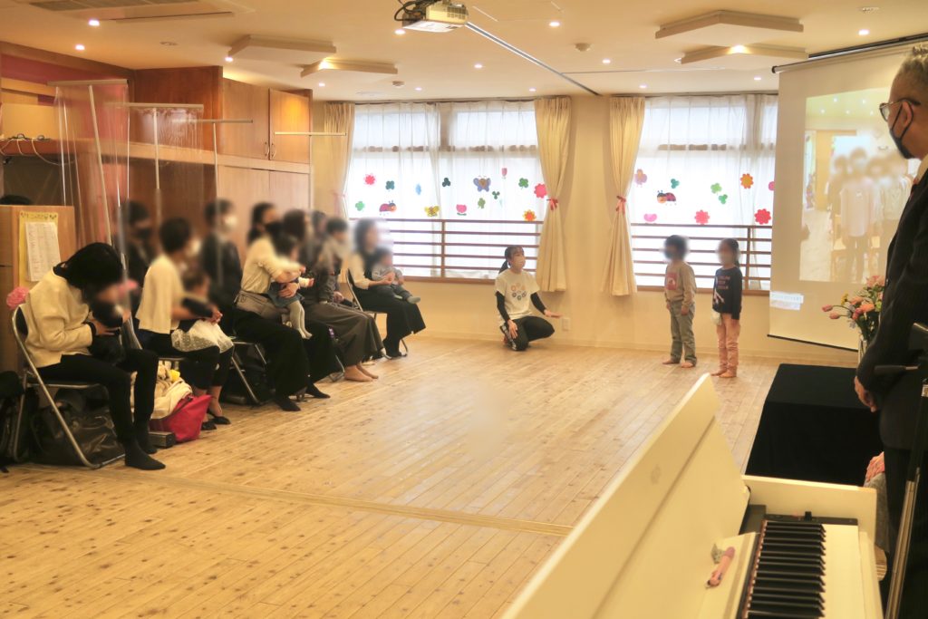代表のうちゅう組2名と、1階保育室からzoomで繋ぎ、新しいお友だちにお祝いのメッセージと歌のプレゼントを送りました。最初は「ちょっと恥ずかしい」と照れていたうちゅう組も本番では堂々と歌ってくれました!!