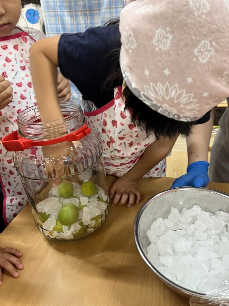 疑問に思ったのは良い機会と思い、「調理さんに梅ジュース作りできるか聞いてみよう!」と聞きに行き、ついに実現することができました!