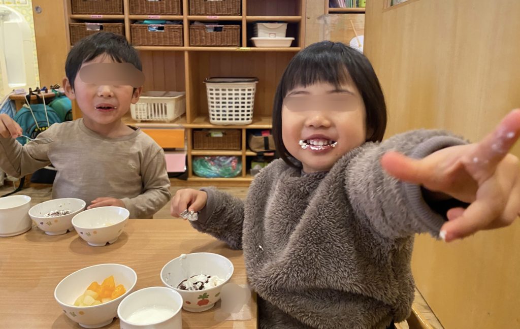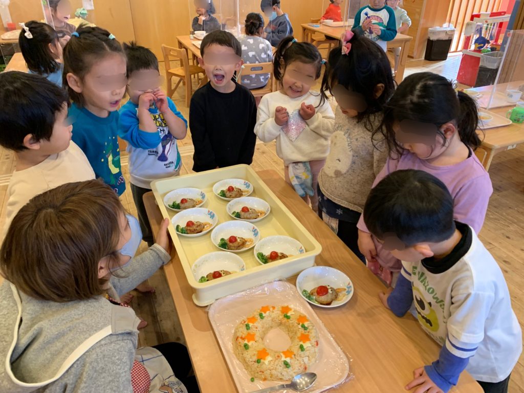給食を見た瞬間に「かわいい!!」「はやく食べたい!!」と大喜びで、キラキラ笑顔の子どもたちでした*