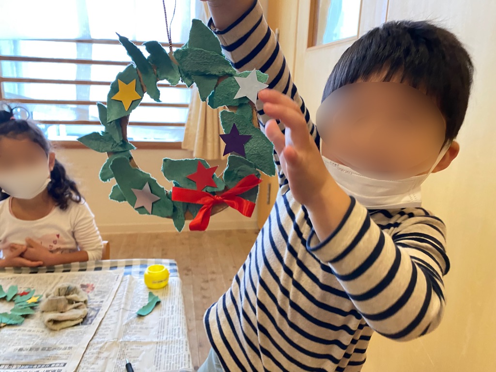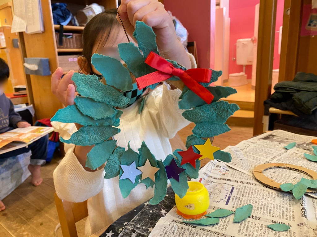 「園長先生〜!みてみて!クリスマスのリース作ったよ〜!」と