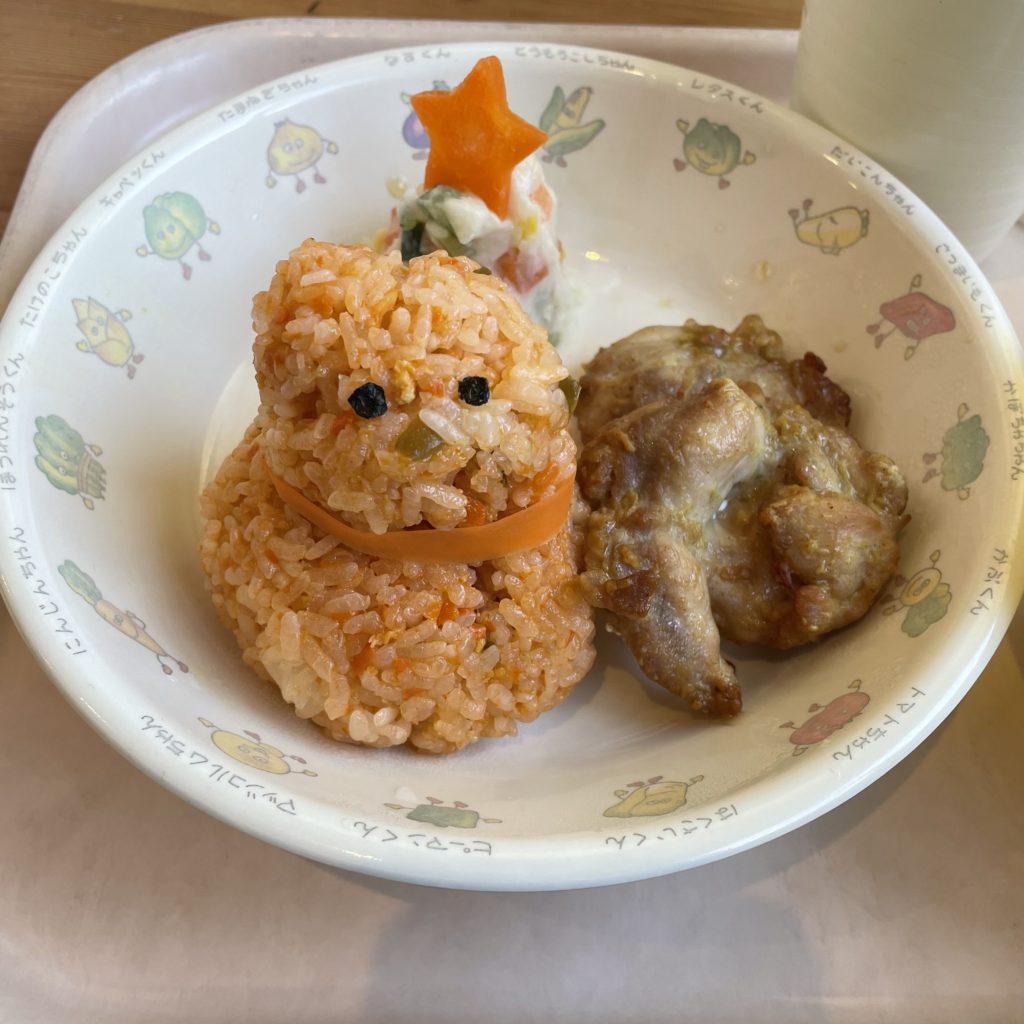 雪だるまのチキンライス⛄️とツリーのサラダ🎄とチキン🍗でした!!