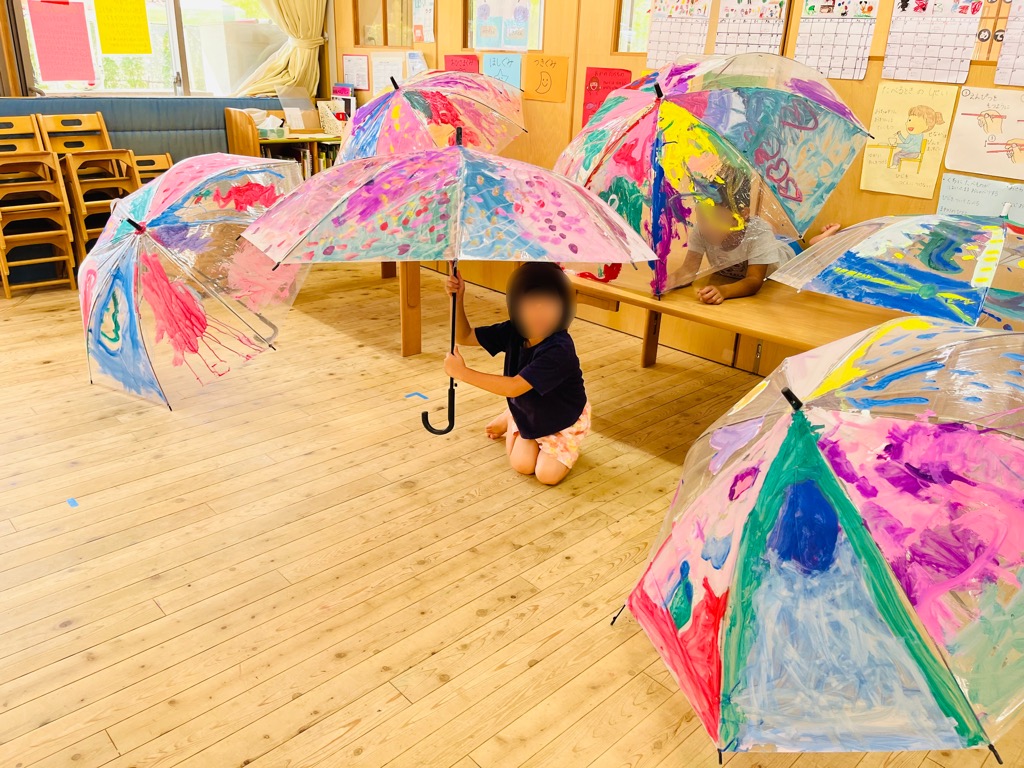 子どもたちも自分の傘の下に潜って遊んだり、お友達と傘の下でおしゃべりしたりと楽しそうでした!