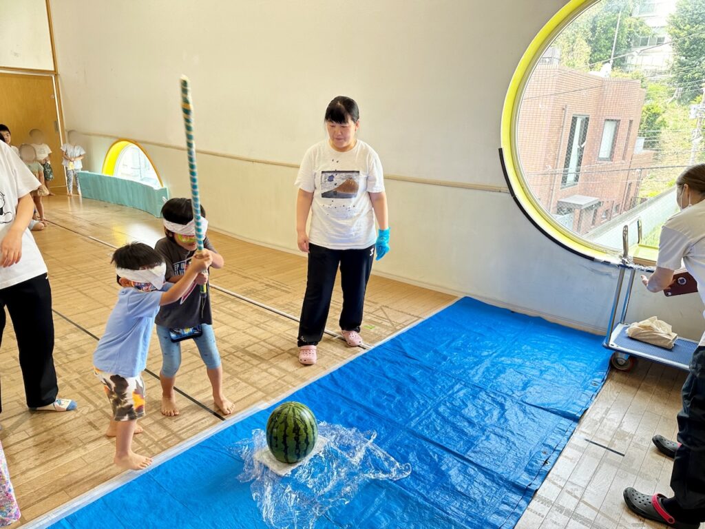 夏の締めくくりには、みんなでスイカ割り!