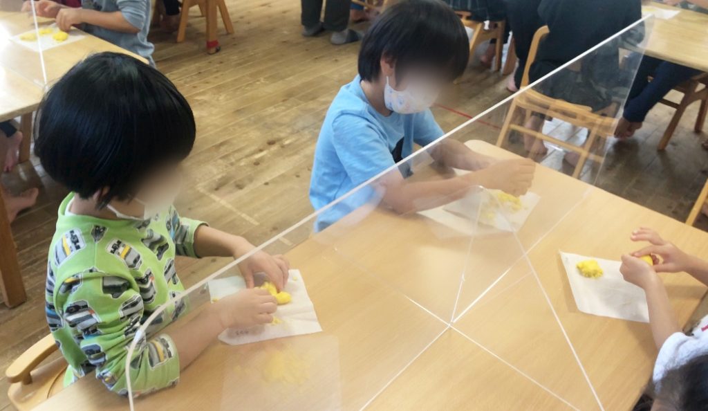 今日は5歳児が食育でクッキーの形作りをしました。
