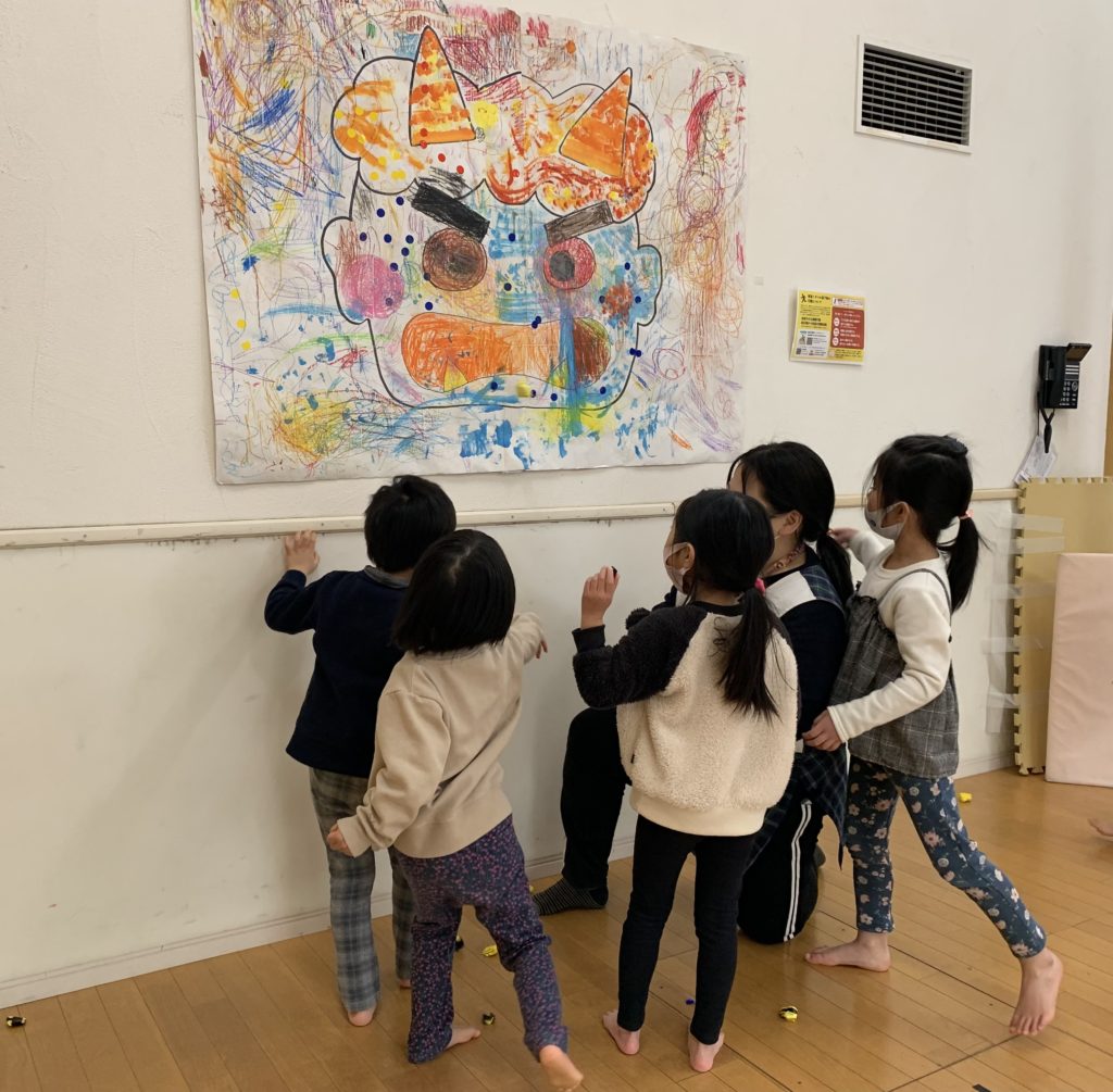 ということで、みんなが作った鬼をめがけて『豆まき』が始まりました。