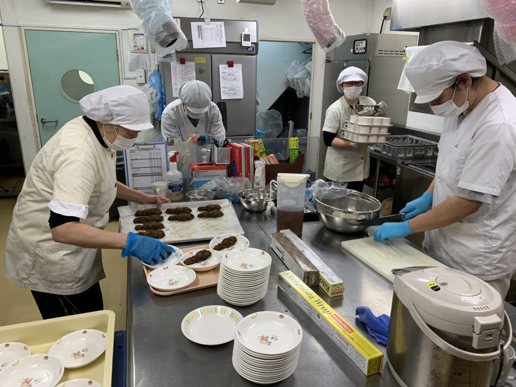 元気な声が園内に響いている頃、給食室では、先生たちが大急ぎで